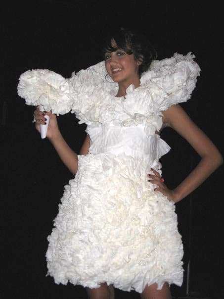 Hoy les traemos un caso en que las manualidades se vuelven moda en una pasarela. Se trata de ropa de diseño hecha en base a materiales hogareños reciclados.