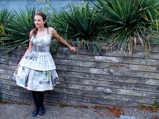 Falda con vuelos hechas de papel periódico