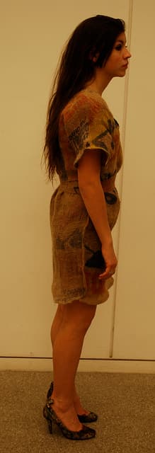 Vestidos hechos con sacos de papas recicladas