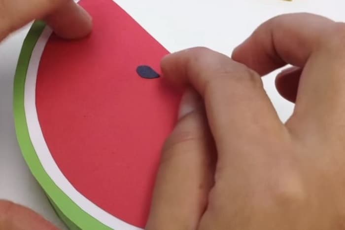 13. Coloca pequeños pedazos de papel negro (en forma de gota) para simular las semillas.