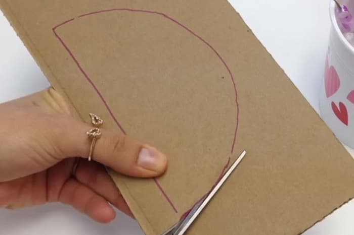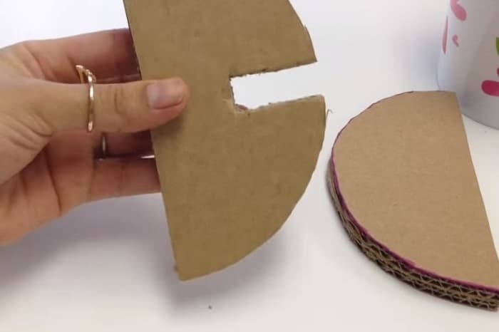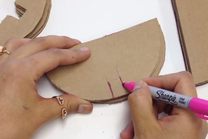 1. Recorta en los pedazos de cartón 9 medios círculos. El tamaño debe ser más grande que el de tu celular. Puedes obtener el molde aquí.