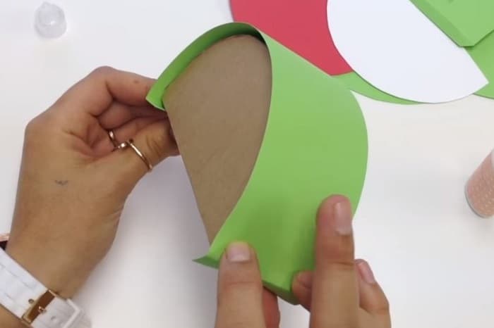 9. Ahora coloca una tira de papel verde alrededor de la base.