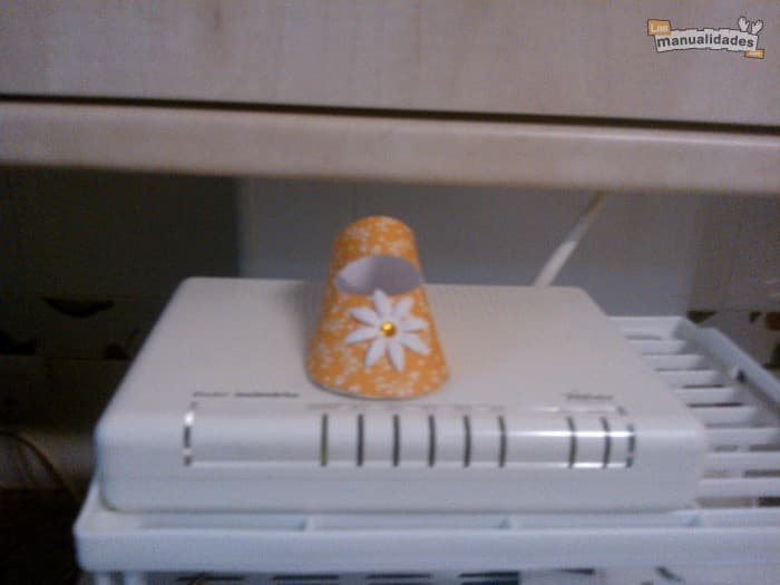 Por último, pega la flor artificial y el diamante artificial en el centro del zapato de bebé y ¡listo! Ya tienes un complemento decorativo simplemente perfecto para lucir en el cuarto de los peques.