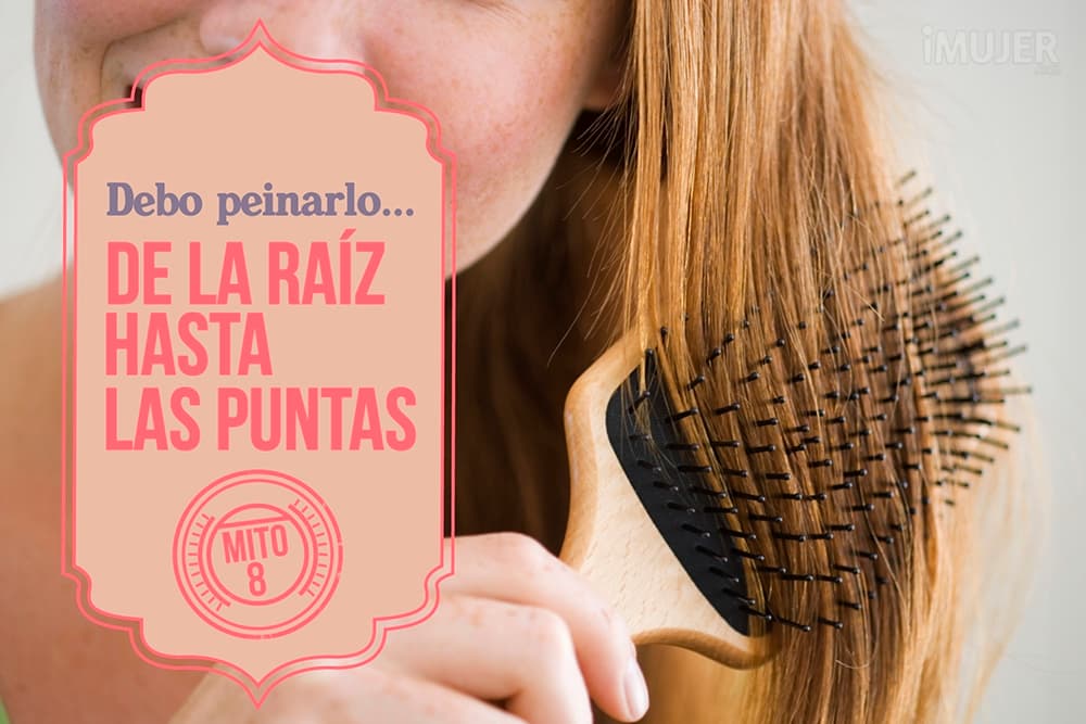 Sin embargo, el mito de que hay que peinar el cabello de la raíz a las puntas no es cierto. Incluso, puede causar que el cabello se quiebre, sobre todo si está húmedo. Por eso, comienza peinando por las puntas y luego por arriba.