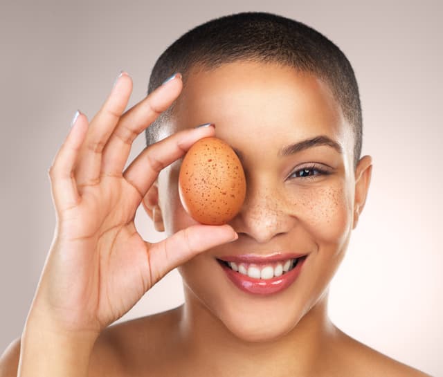Un huevo tiene agua y proteínas, las cuales pueden ayudar a tensar tu piel y darle brillo. Además, contiene vitaminas A, B y D, y minerales como zinc, hierro y calcio, todo esto puede humectar tu piel y ayudar con el acné.