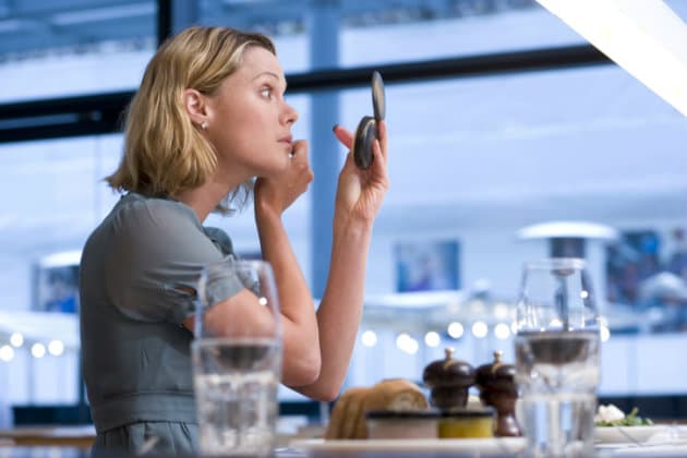 Cuando compartimos una comida o alguna bebida, lo primero que desaparece es el maquillaje, sobre todo el labial. Lo normal es retocarlo pero lo ideal es hacerlo en el baño. Sacar tu cartera de cosméticos en la mesa del restaurante y aplicar color en tus labios mientras los mueves para que el tono se fije mejor, no tiene por qué ser algo que tengas que compartir. Lo mejor es ausentarte por unos minutos y regresar viéndote fabulosa.