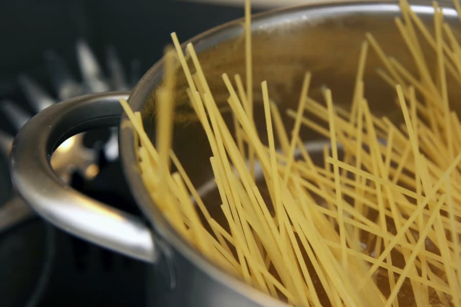 Cuando hagas pasta, añade la verdura favorita de tu hijo al agua hirviendo. Escurre la pasta y combínalo con una salsa.