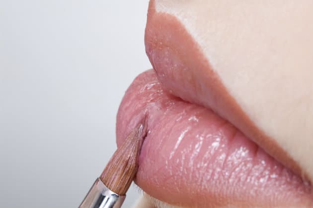 Con el pincel labial, mezcla el delineador labial por encima de tu labio superior para lograr una apariencia más suave.
