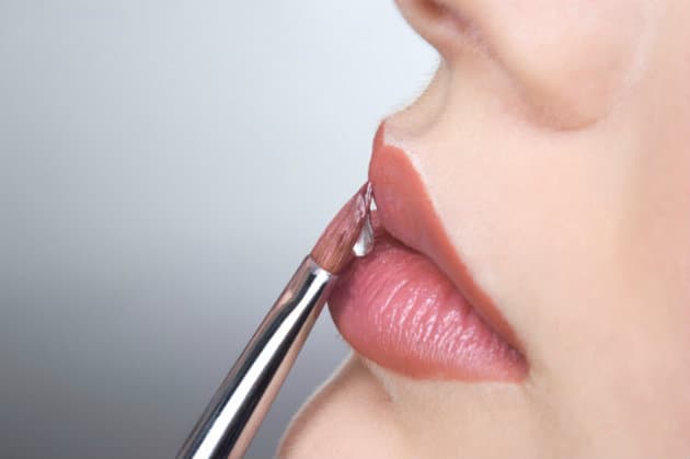 Moja tu pincel en el lápiz labial cremoso y coloca el color sobre tus labios inferior y superior.