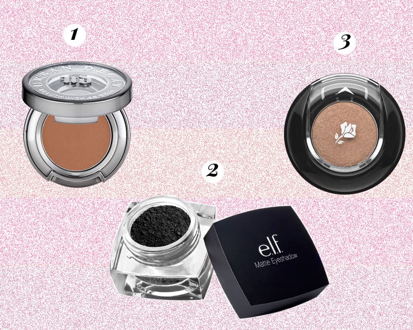 (1. Matte Eyeshadow de Urban Decay 2. Matte Eyeshadow de e.l.f. 3. Color Design Sensational Effects Eye Shadow de Lancôme)