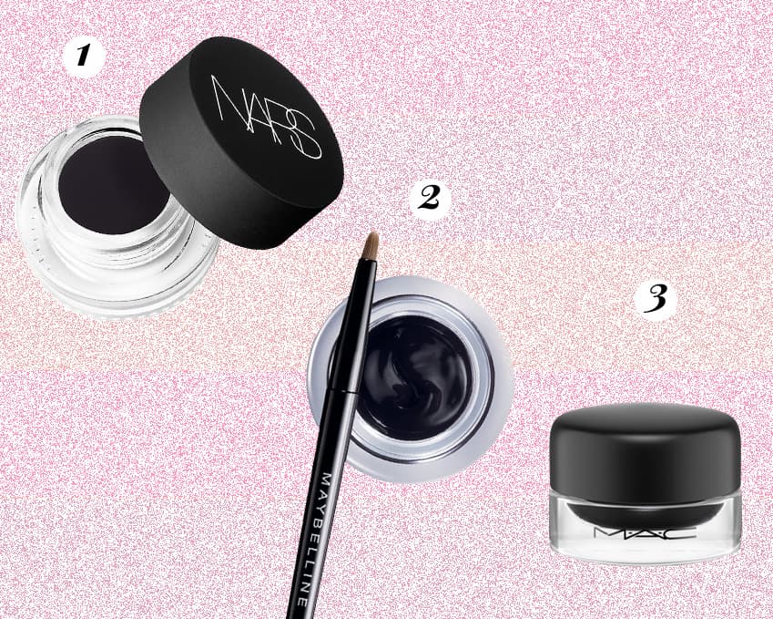 (1. Eye Paint de NARS 2. Eyestudio Lasting Drama Gel Eyeliner de Maybelline 3. Fluidline Long-Wearing eyeliner de MAC)