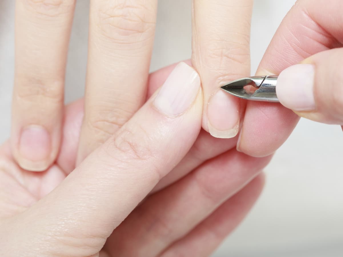 Las cutículas son tejidos que evitan que las bacterias y otros contaminantes dañen la uña o el dedo. Lejos de cortar las cutículas -porque además cuando lo haces, luego crecen cada vez más gruesas- debes aplicar un poco de aceite nutritivo de cutículas y empújalo hacia atrás.