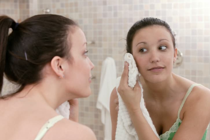 4. Espera de 10 a 15 minutos para que el pegamento comience a ablandarse y sea más fácil retirarlas. Una vez pasado el tiempo, aléjate del recipiente y seca tu rostro con una toalla limpia, recuerda no tocar tus ojos.