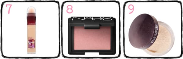(Eraser Eye Concealer de Maybelline + Orgasm Blush de Nars + Translucent Loose Setting Powder de Laura Mercier)
