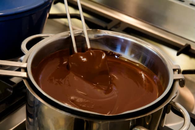 - Prepara el cacao a baño maría y revuelve constantemente con la brocha. Agrega agua hasta obtener una consistencia espesa (como la de un tinte de cabello)