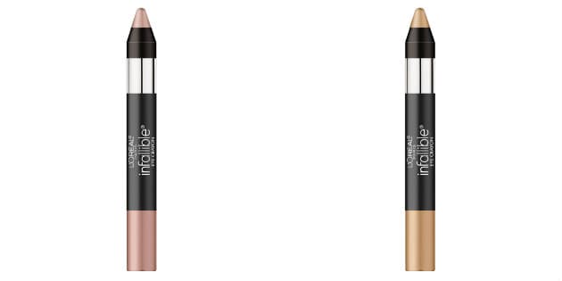 PASO 4: Comienza a usar las sombras en creyón igual que hizo la makeup pro que para este maquillaje usó tanto el Enduring Rose y el Everlasting Gold de la colección L’Oréal Paris Infallible Eyeshadow Crayon.