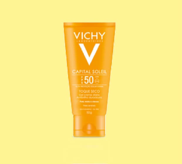 El bloqueador solar Capital Soleil Toque Seco FPS 50 de Vichy protege la piel y combate su grasitud.
