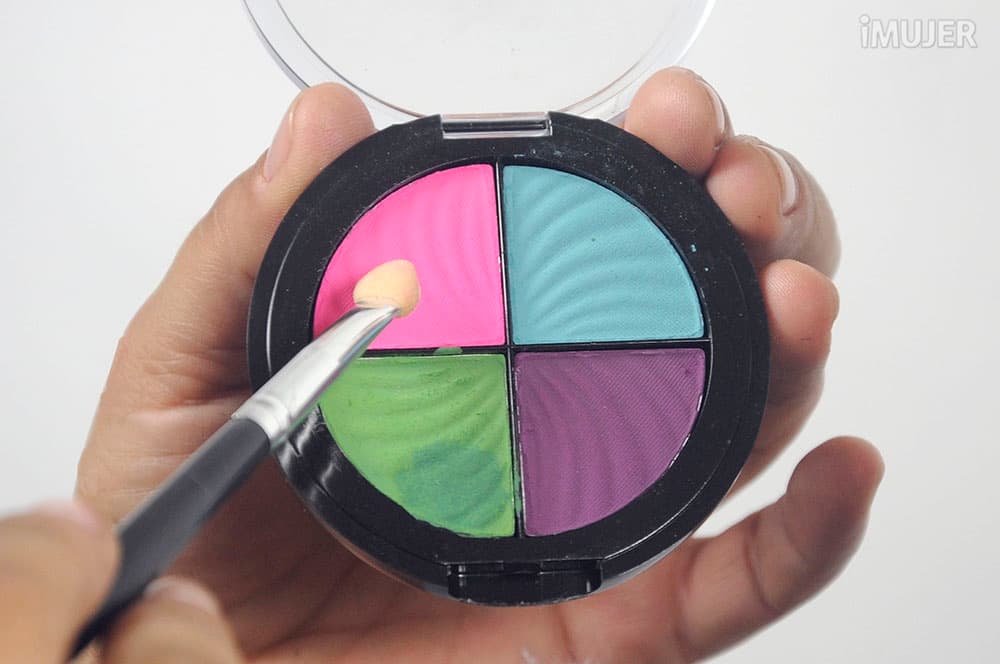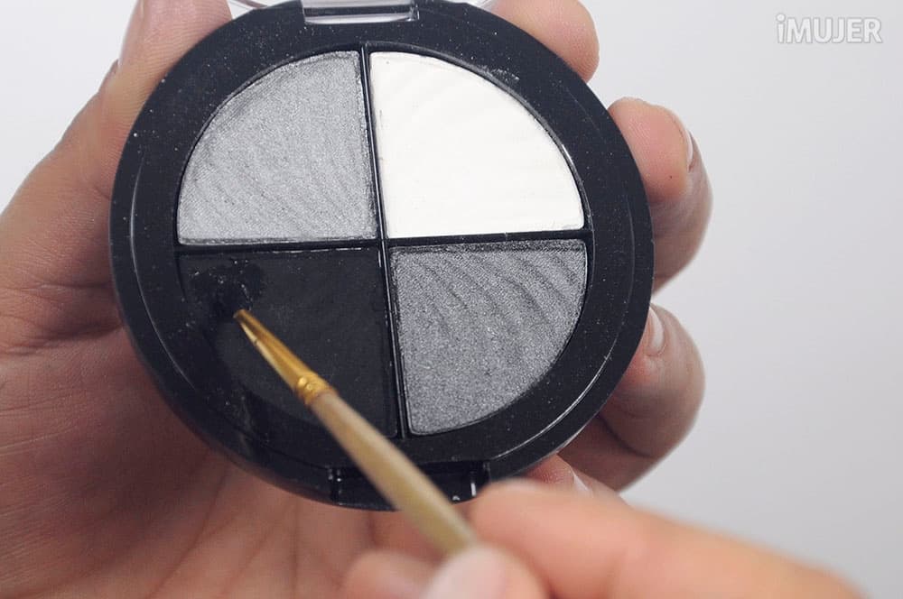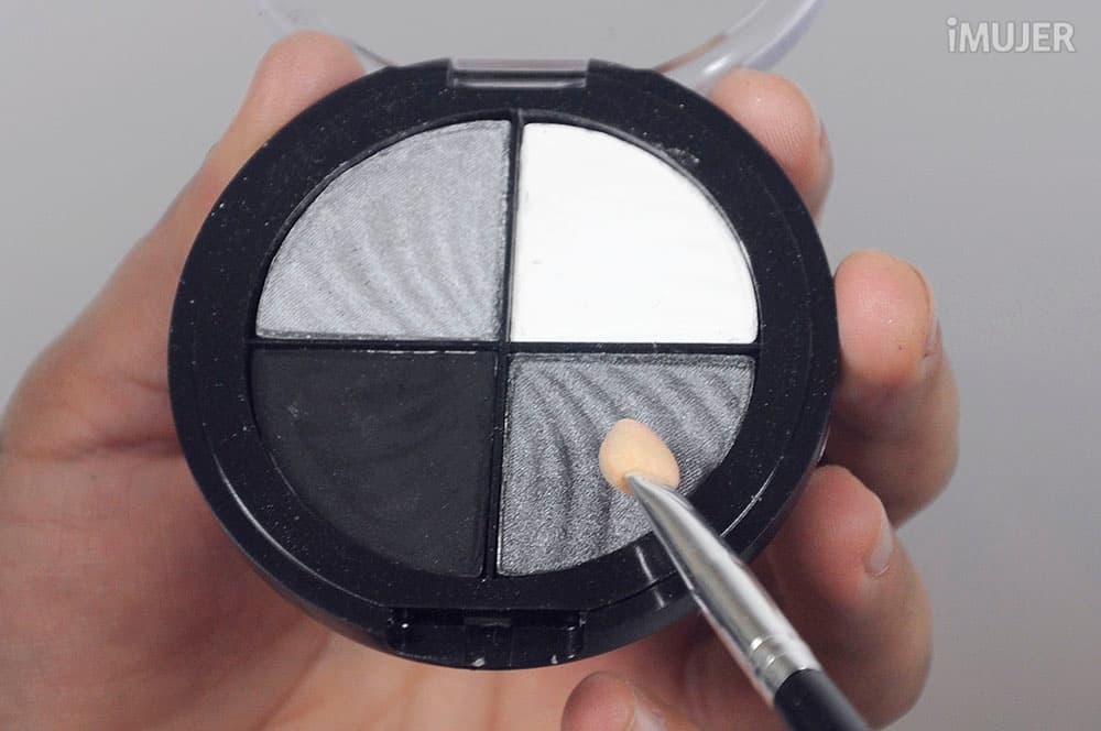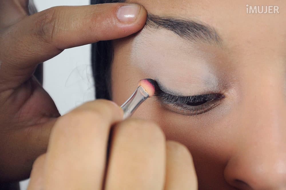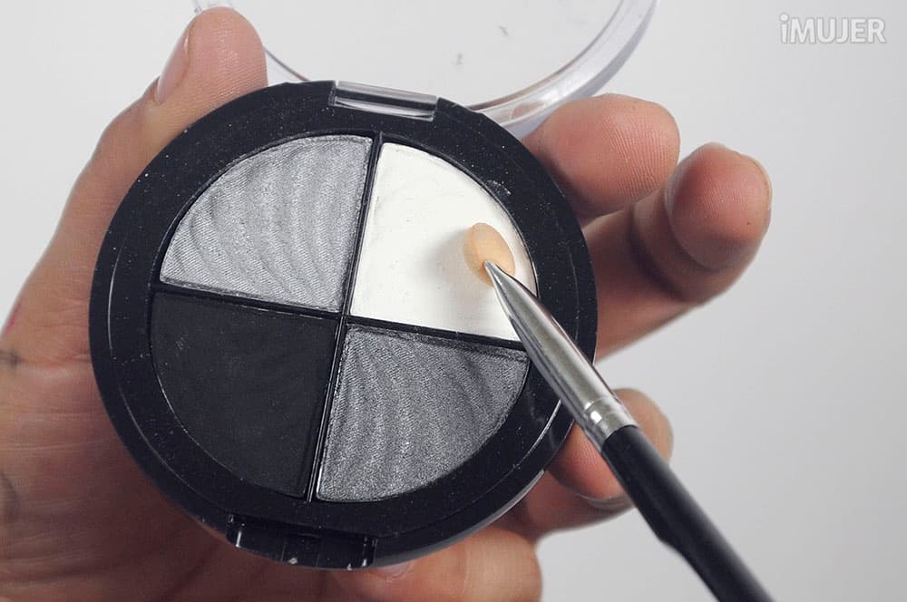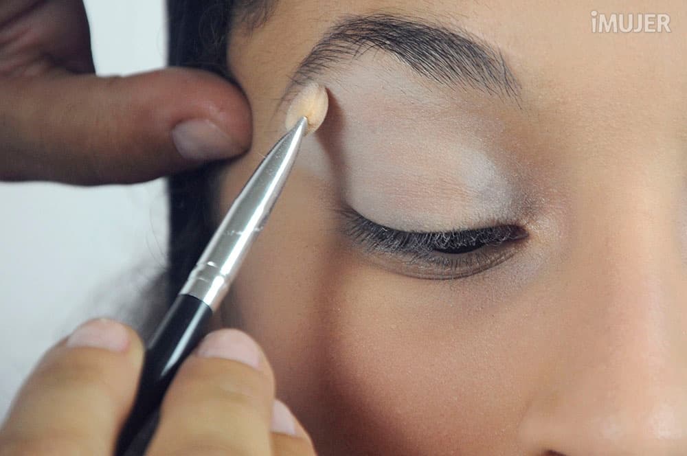 Primero que nada, cubre todo el párpado y la parte inferior de la ceja con la sombra blanca, tal como lo muestra la imagen.