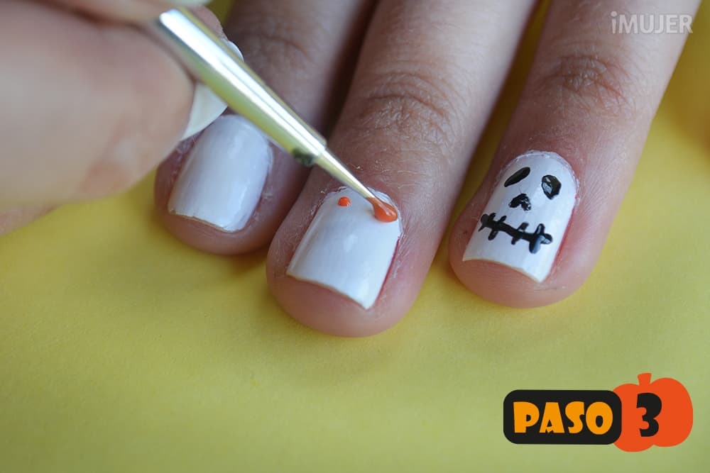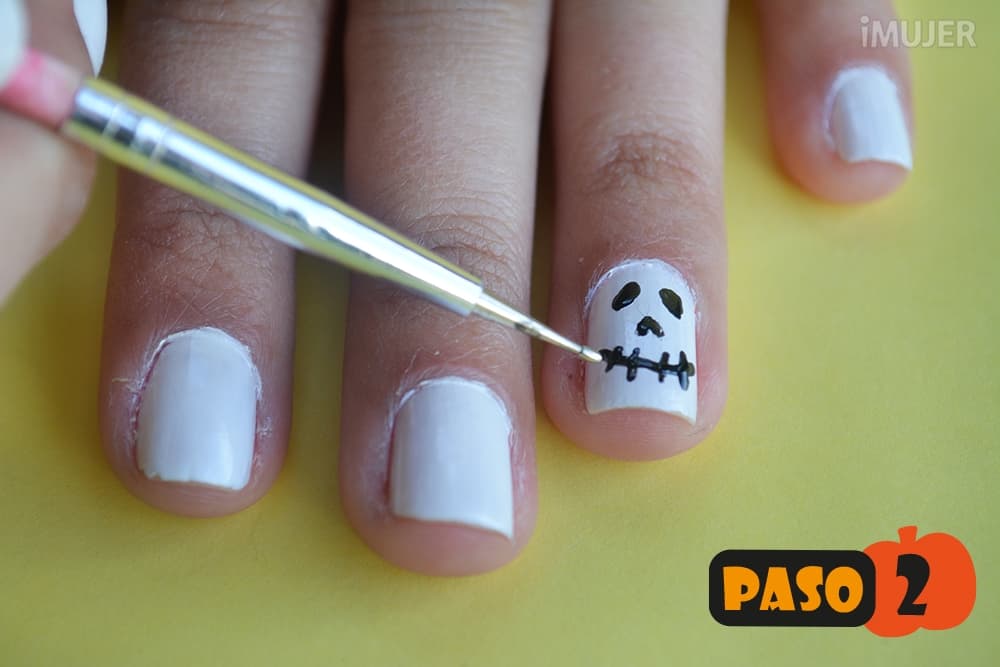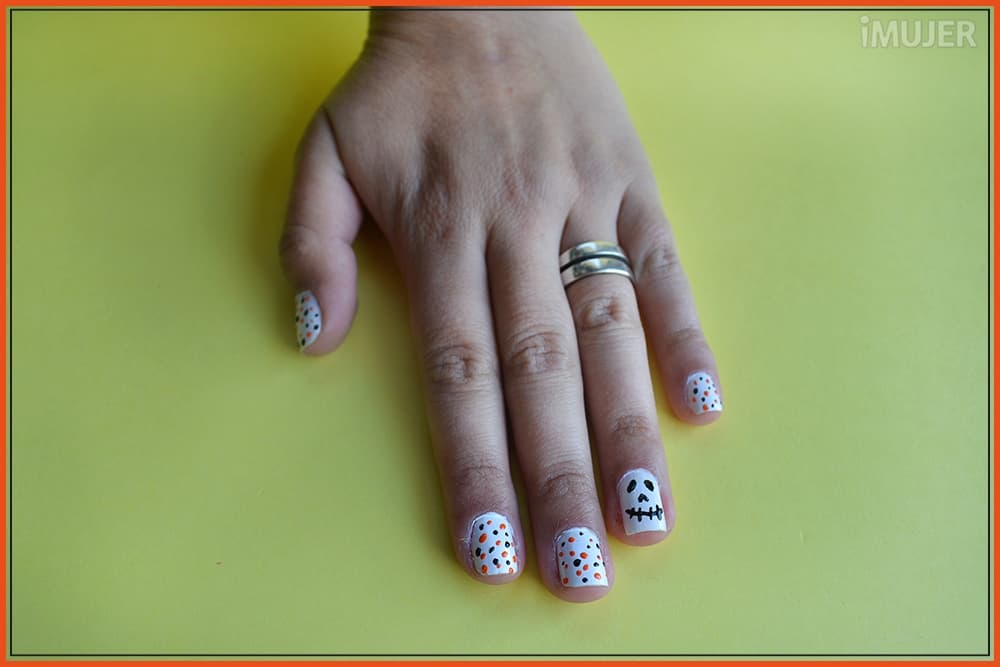 Y dibujar la calavera en tu uña anular, tal como lo muestra la imagen. ¡Es bien sencillo!