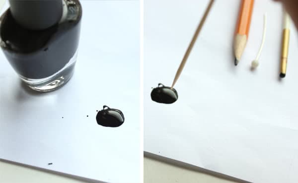 Coloca un poco de esmalte sobre un papel hasta formar pequeños círculos. De la misma manera, realiza este paso todas las veces que sea necesario, dependiendo de cuántos colores de esmaltes quieras utilizar en este decorado.