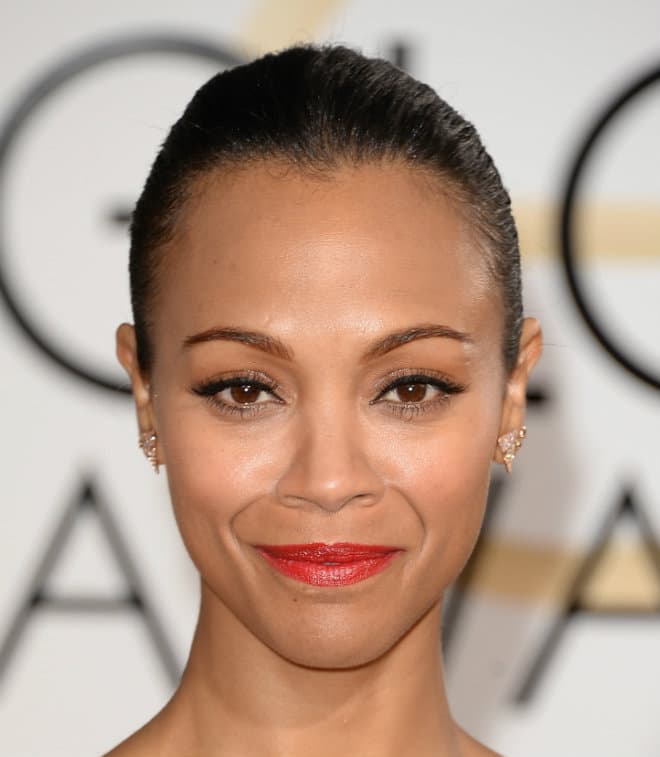 Si tienes el tono de piel sun-kissed como el de la dominicana Zoe Saldaña, puedes usar fácilmente cualquier naranja brillante. También puedes llevar un sheer-orange para una tarde de playa.