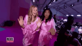 Es imposible no padecer nervios si estamos a pocos minutos de caminar ante la mirada de millones de personas. Pero los ángeles encontraron una excelente manera de desestresarse: ¡BAILAR!