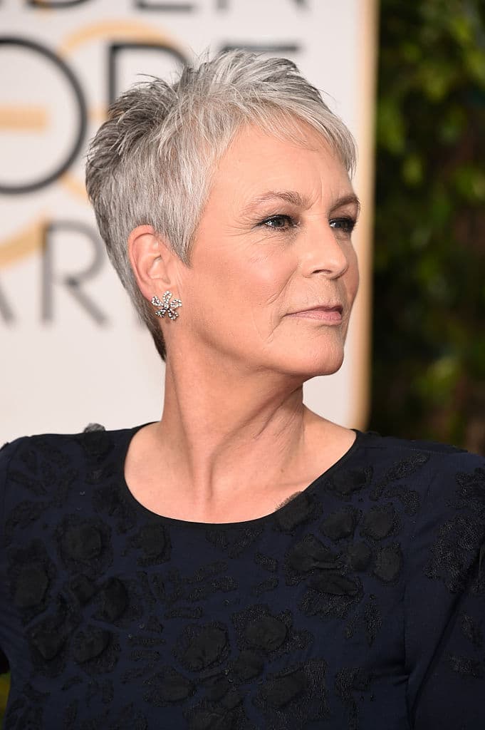 Desde hace años, la reconocida scream queen de los ochenta luce su cabello en un corte pixie que luce aún más gracias a su tono blanco con algunos reflejos grises.