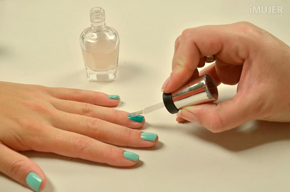 Aplica sobre tus uñas verde agua una capa de brillo.