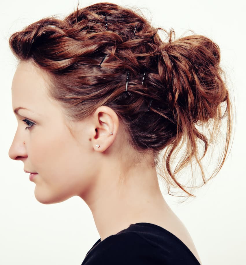 Si estás buscando un reto, este chongo podría ser la opción. Combinando trenzas y recogido, crea un estilo perfecto para el pelo que no lavaste ese día, ya que será más fácil de sostener con pasadores.