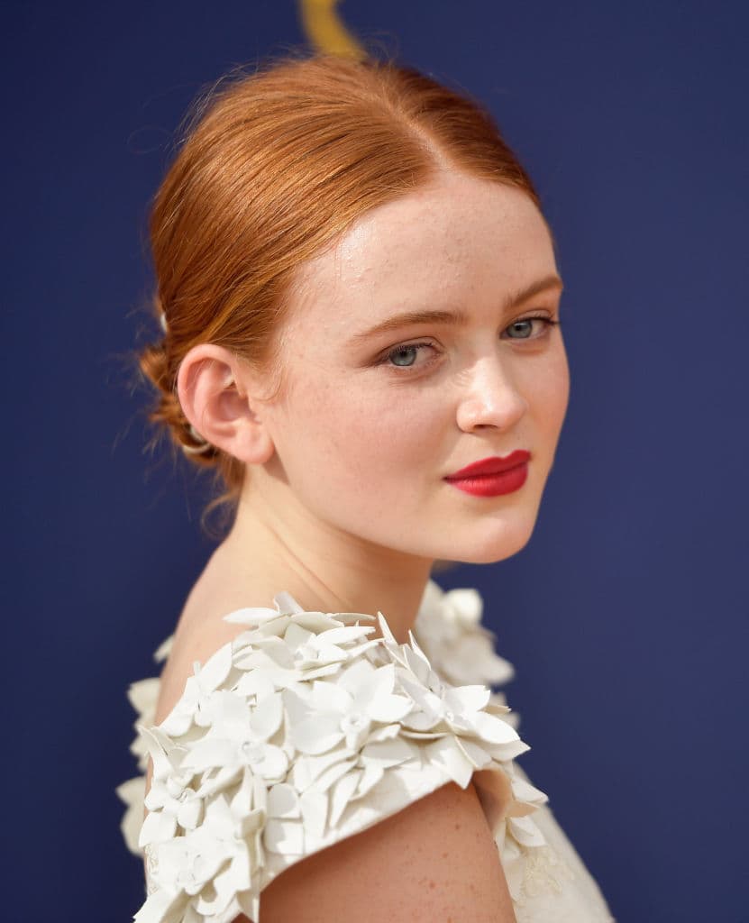 El vestido era blanco, así que Sadie decidió resaltar sus labios con un hermoso rojo.