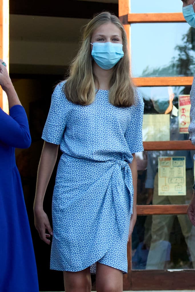 Las princesas demostraron que este peinado es bastante versátil, ya que se puede combinar con diferentes looks. Mientras que Leonor lo combinó con un vestido coral midi de un estampado de diminutas flores y alpargatas sin tacón; Sofía lo hizo con un mono blanco de rayas beige y unos wedges con tiras cruzadas en los tobillos.