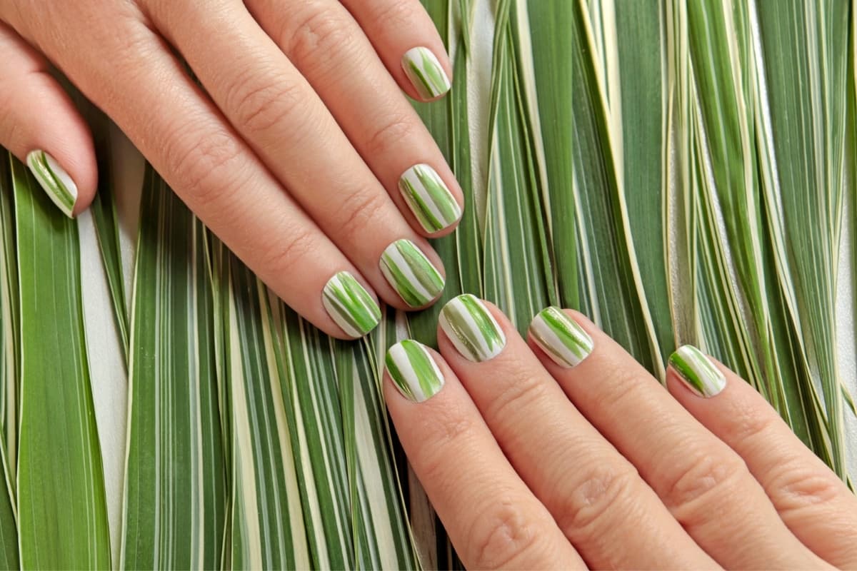 Si eres una señora de las plantas hecha derecha, lleva esta pasión hasta en tu nail art. Una opción muy sencilla es pintar líneas de diferentes tonos de verde en tu uña y, ¡ voilá!
