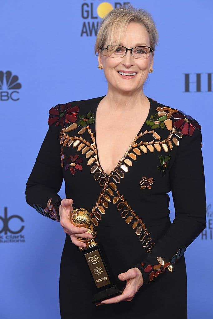Esta grandiosa actriz no solo se luce en la gran pantalla sino que también lo hace en la Alfombra Roja: Meryl escogió un look más bien intelectual que refleja a la perfección su personalidad.