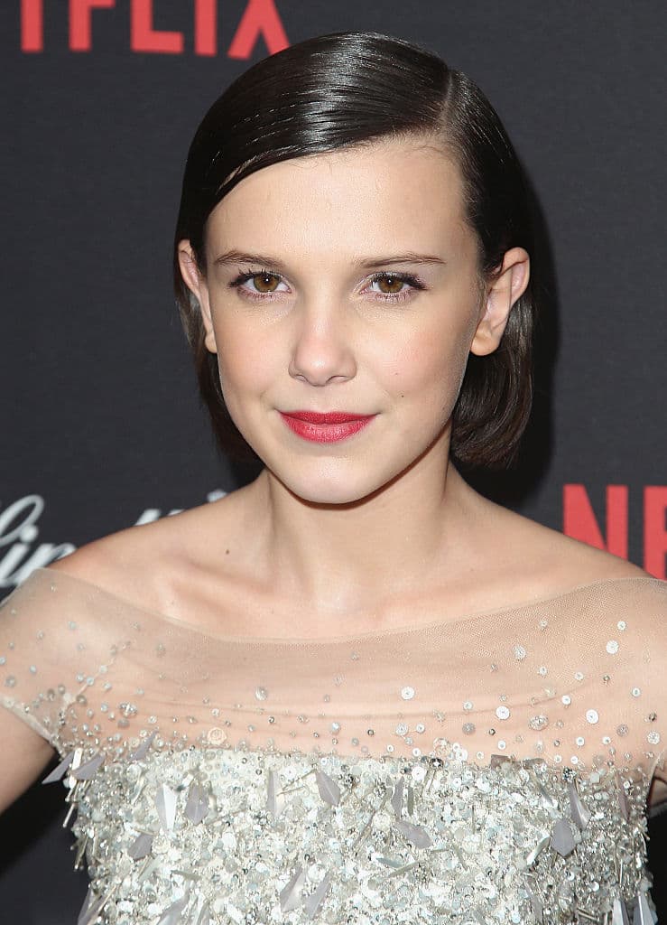 La pequeña sensación de Netflix y la promesa de Hollywood, se presentó en la Alfombra Roja con un vestido hermoso y con un maquillaje acorde a su edad.