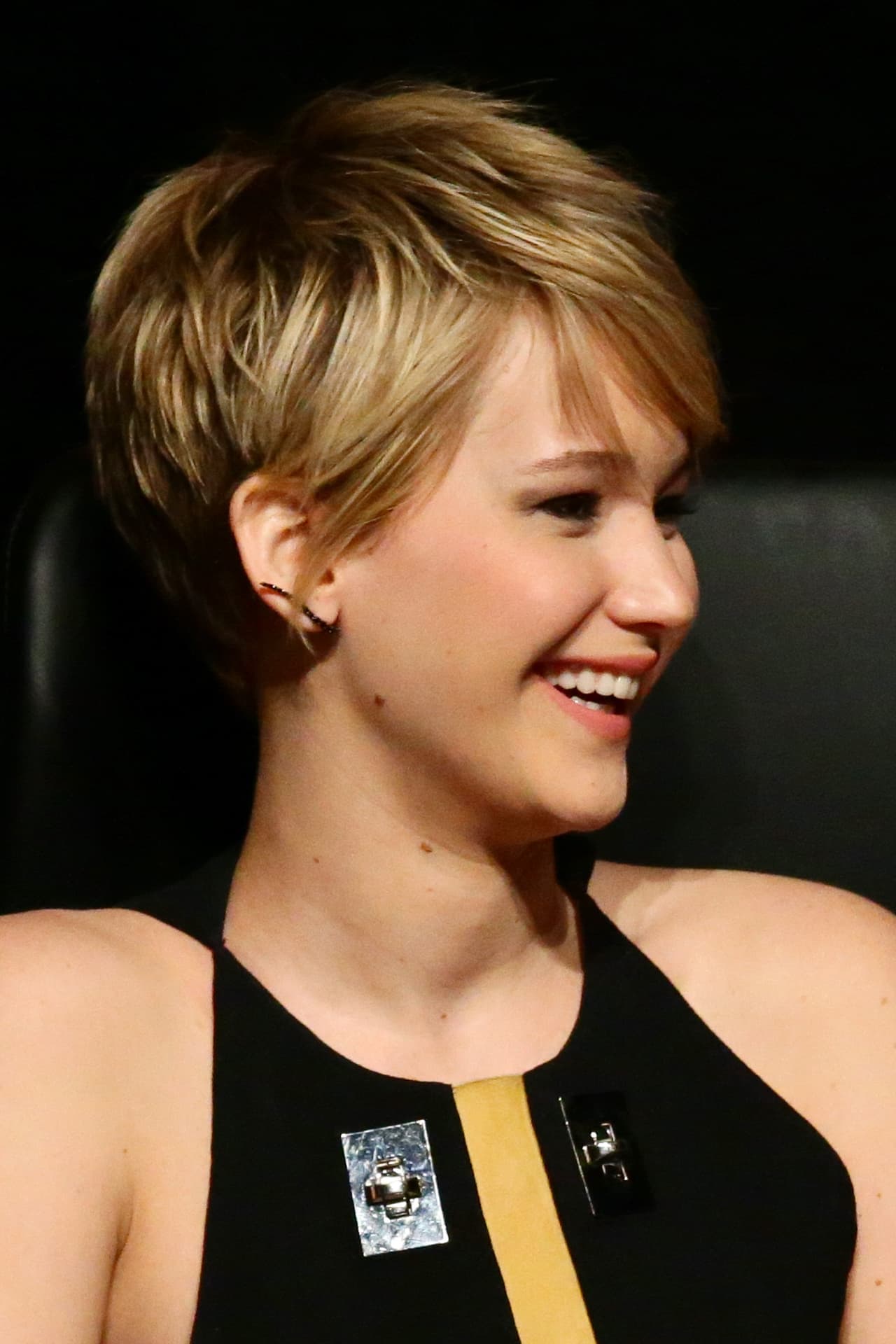 Desde que Jennifer Lawrence se cortó el pelo a lo pixie, la hemos visto con una serie de peinados despeinados. El pelo corto es ideal para este tipo de peinado, ya que aporta juventud a un corte de cabello que tal vez sea demasiado formal para una veinteañera.
