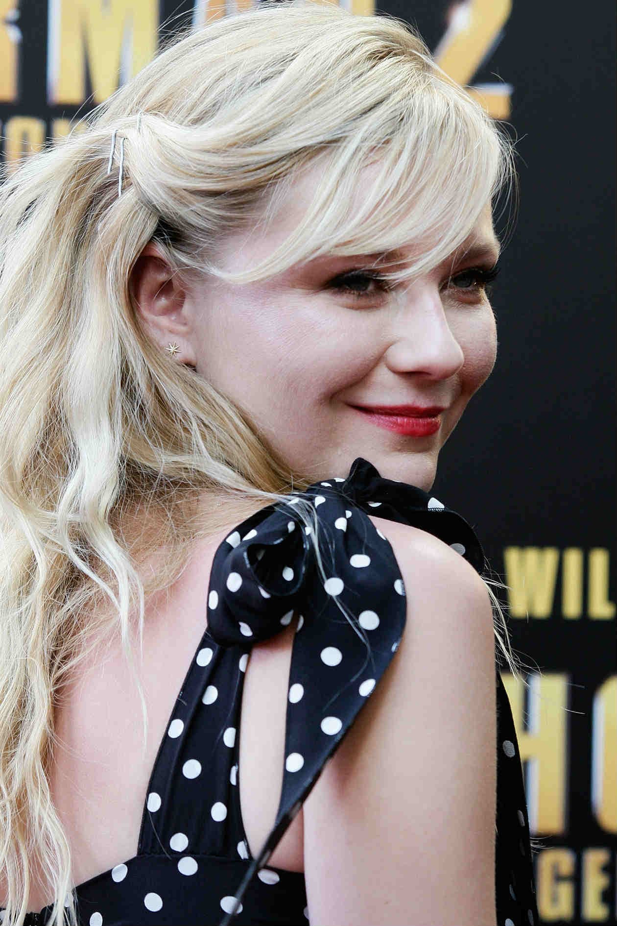 Kirsten Dunst suele deleitarnos con una cabellera larga y despeinada: unas cuantas ondas sin armar mucho, raya al costado y algún broche que corona el peinado que parece ser hecho al azar.