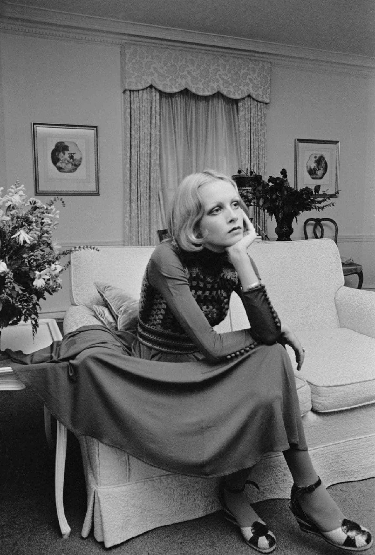 En realidad el corte bob fue muy querido en la época. Checa como la legendaria Twiggy lo luce sin fleco y con raya media.