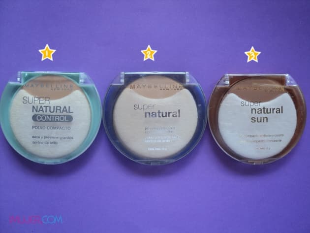 Estos son polvos de maquillaje buenos y económicos: el N°1 (Super Natural Control de Maybelline) y N°2 (Super Natural de Maybelline) son casi iguales aunque el N°1 es ideal para pieles grasas con granitos ya que ayuda a secarlos y controla el brillo generado por el sebo de la piel.