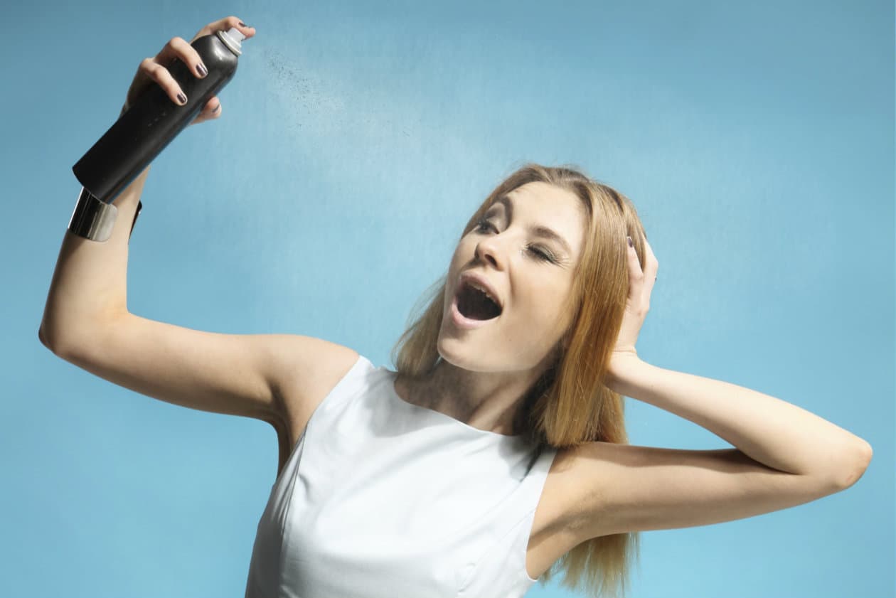 Algunos días de viento y pelos rebeldes, usamos spray para que el cabello se mantenga donde debe estar. Hasta allí, todo bien. Pero como siempre, todo exceso es malo, y usar mucho spray para el pelo o fijador, puede resecar demasiado tu pelo y dañarlo. Peor aún si luego de aplicarlo peinas o cepillas tu cabello, haciendo que se rompa.