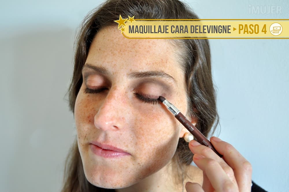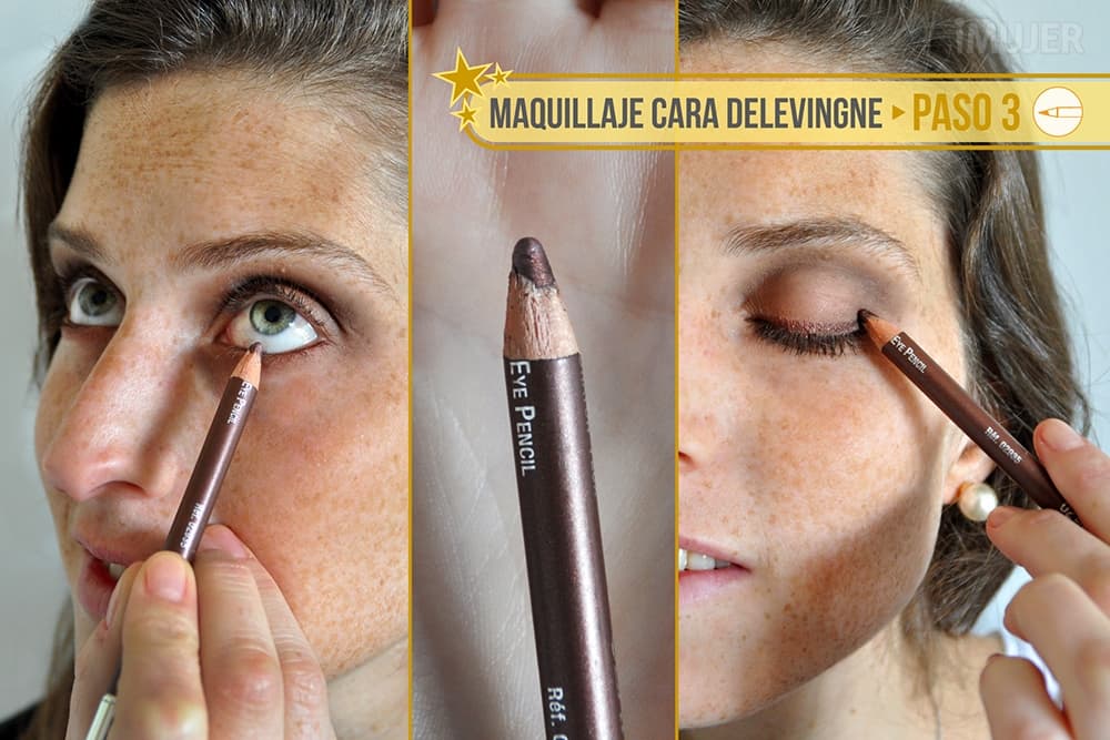 Para hacernos el delineado de Cara, voy a cambiar el delineador negro clásico por uno marrón. Lo aplico en la línea de agua y también en el borde superior del ojo.