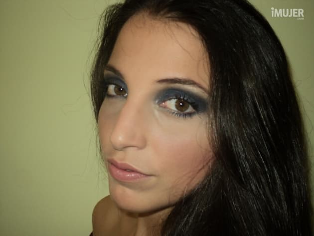 Se trata de un maquillaje de ojos ahumados en azul o smokey eyes. No es complicado, sólo debemos de ser prolijas a la hora de aplicar la sombra y obviamente esfumar todo muy bien.