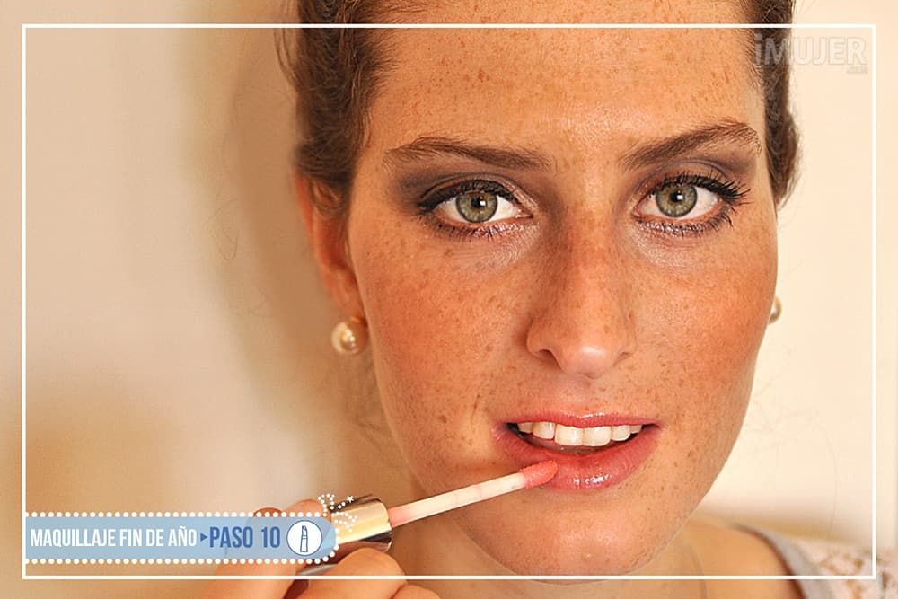 Y para los labios, esta vez vamos solamente con un gloss en un rosa claro.