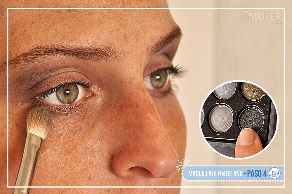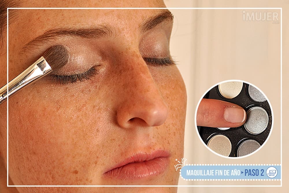 Empiezo por los ojos, que serán los protagonistas de este maquillaje para Año nuevo. Voy a usar sombras de ojos de color gris, que luego con un poco de glitter nos van a dar una mirada súper destellante para celebrar el 2014.