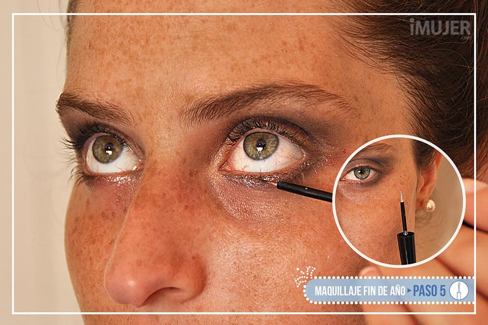 Ahora delineo el borde inferior del ojo con un delineador glitter.