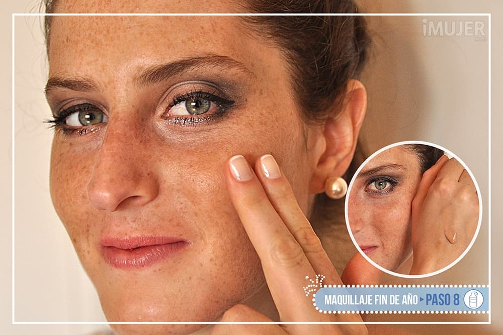 Con los ojos ya maquillados, sigo con la piel, colocando la base. Recuerda que lo ideal es que sea del mismo color de tu piel.