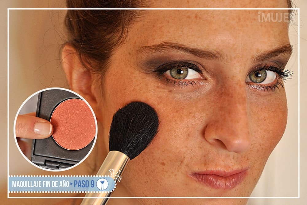 ¡Momento del rubor! Cuando apliques rubor, elige uno que tenga destellos de luz, como dorado en este caso, para complementar el brillo de los ojos.
