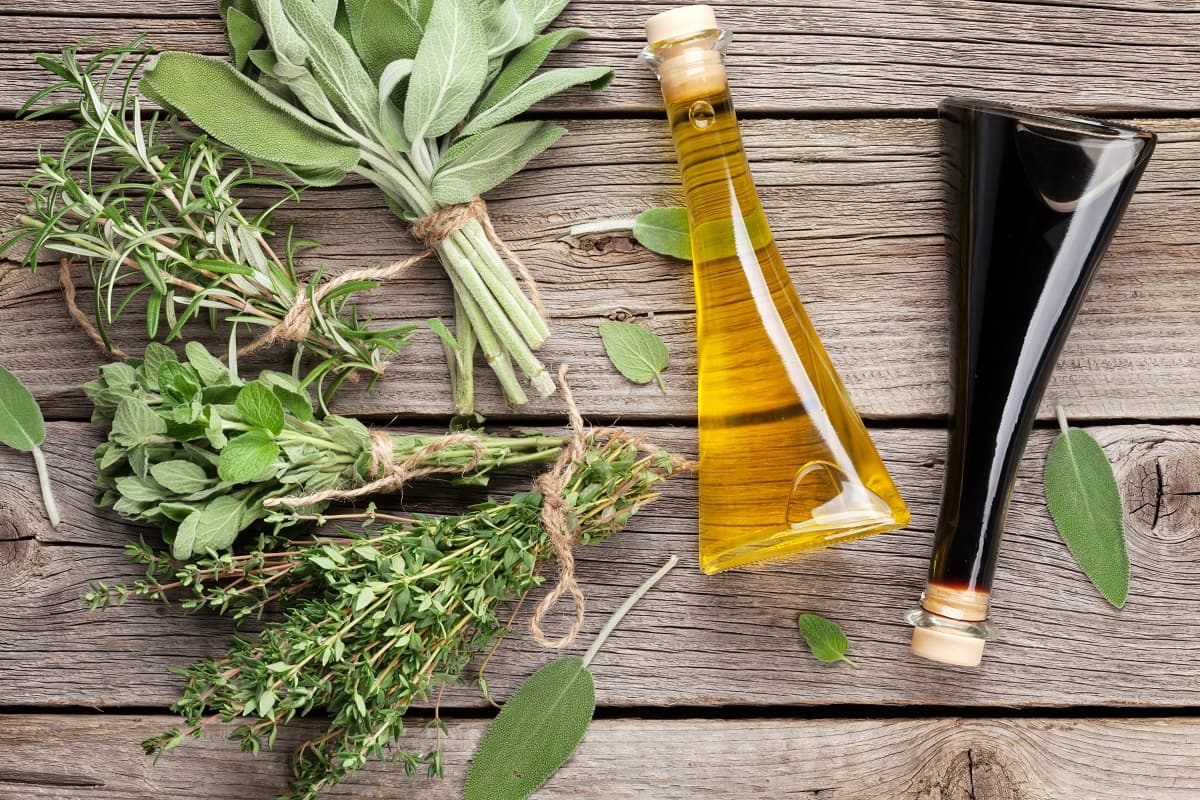 Pon a hervir las hojas de romero y menta en una olla con agua. Espera a que se enfríe y cuela para obtener la infusión. Agrega un chorrito de vinagre y mezcla.
