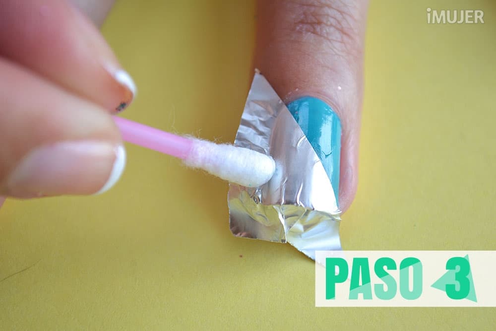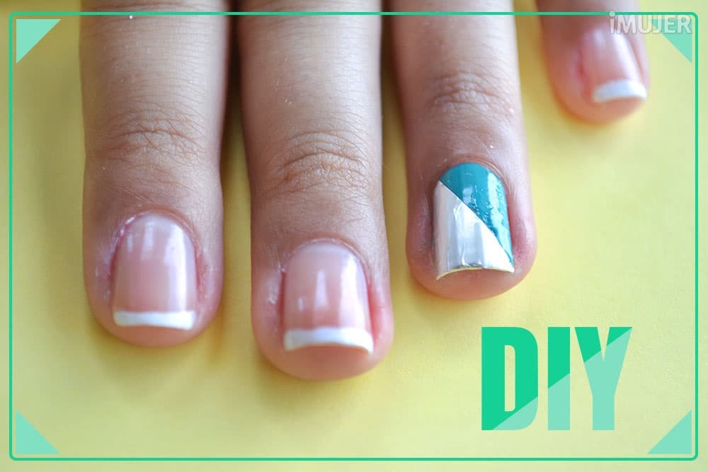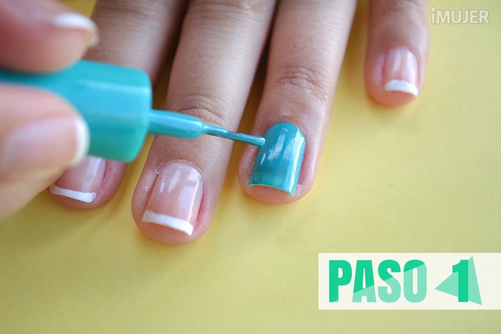 Primero que nada, cubre tu uña anular con el esmalte que elegiste (como ves, nosotras hemos optado por este hermoso turquesa). Hazlo con paciencia –¡no querrás pintarte todo el dedo!–.