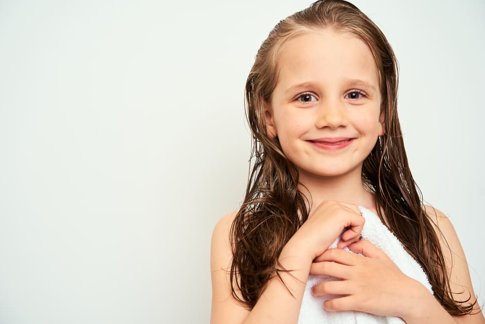 La manera más sencilla para conseguir una melena mojada y sin nudos es que tu hija tome un baño y lave su cabello con shampoo y posteriormente aplique acondicionador de medias a puntas.