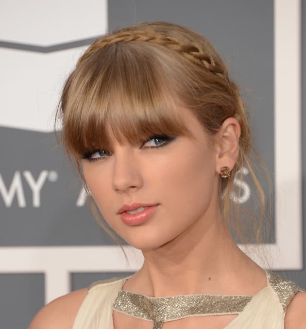 Si quieres un peinado recogido con una trenza y el anterior te pareció un tanto complicado, puedes seguir el ejemplo de Taylor Swift. Para la gala de los Grammy 2013, la cantante trenzó su cabello y lo amarró hacia atrás, como un moño bajo, pero utilizó una de sus trenzas como vincha para decorar el peinado.